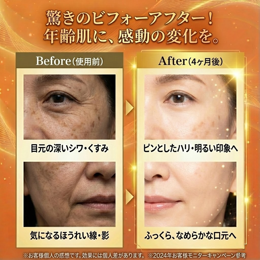 ただし、肌全体のトーンが均一になり、くすみが目立ちにくくなったと感じます。